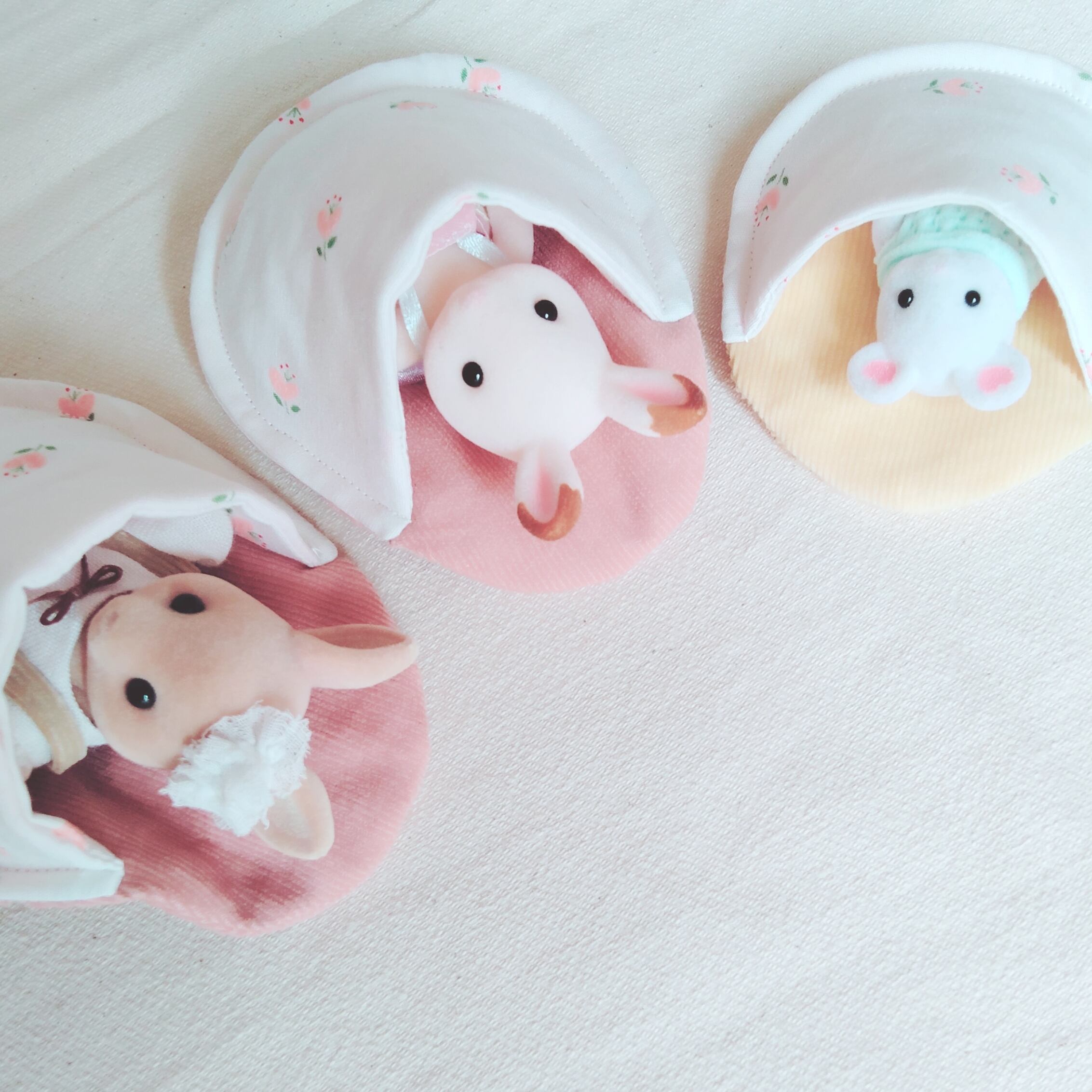 たまご型でお部屋に置いても壁に掛けても持ち歩いてもかわいいシルバニアのおふとんです♪
